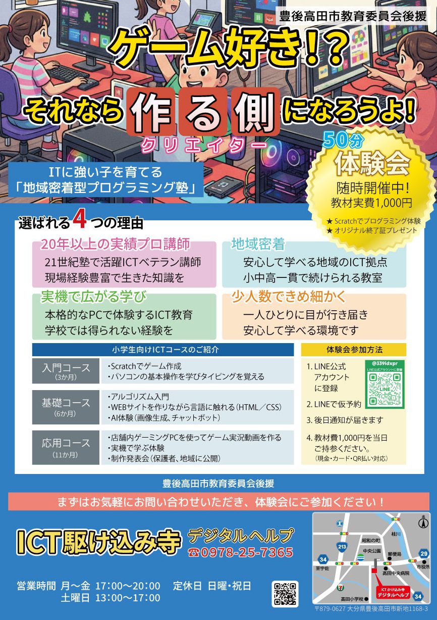 大分県豊後高田市でICTの基礎から実践的な技術まで、役に立つスキルを身につけるチャンスです。お申し込みをお待ちしています!